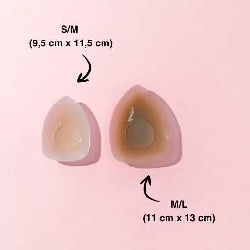 Talla M (10 cm): es la favorita de nuestras clientas (y la más versátil). Si llevas copas B, C o D, esta talla te va a quedar genial. Cubre lo necesario, se adapta a tu forma y no se nota nada.